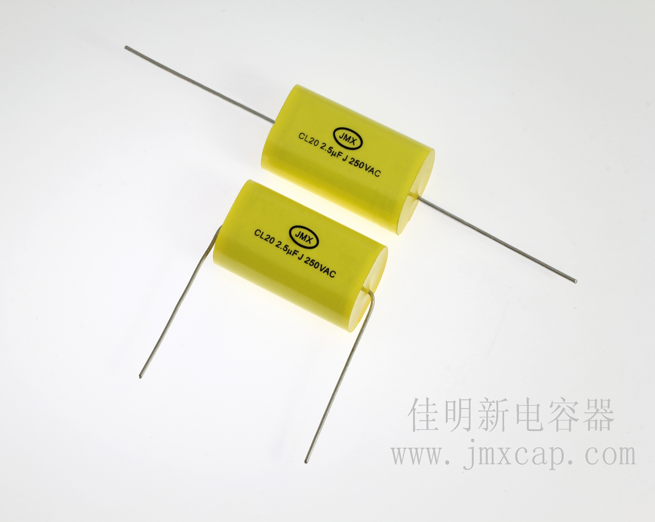 示例:表示的是:該電容器是JMX品牌的金屬化聚酯膜材質(zhì)的電容,標(biāo)稱容值是2.5uf,容值誤差在±5%,額定工作電壓是250V的交流電。        表示的是:該電容器是JMX品牌的金屬化聚丙烯材質(zhì)的電容,標(biāo)稱容值是12uf,容值誤差在±5%,額定工作電壓是400V的直流電,公司網(wǎng)址是:m.wcyaojia.com。